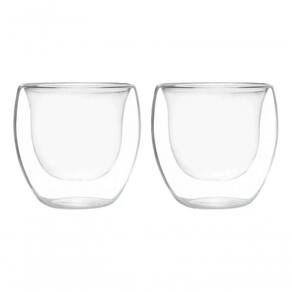 Conjunto 2 Copos Parede Dupla Borossilicato Com Base Bambu 80ml - Mimo Style