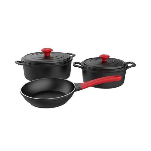 No acabamento, levam dupla camada de antiaderente polimérico interna e externamente. O que se traduz em durabilidade e praticidade na limpeza. Em seu design, três saídas de vapor simétricas tornam o cozimento uniforme. Os pegadores são produzidos em BMC, polímero de engenharia que garante resistência térmica e mecânica. Assim, as caçarolas podem ir ao forno para diversos preparos.