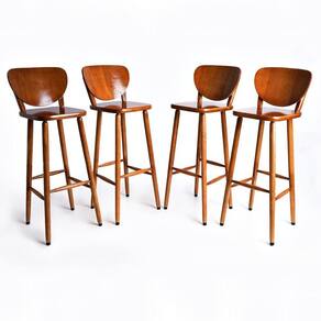 Conjunto 4 Banquetas Alta Bistrô de Madeira Torneada Imbuia - VivaLigna