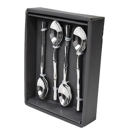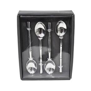 Conj 4 Colheres Aço Inoxidável Bambu 13,5cm Linha Índia BTC