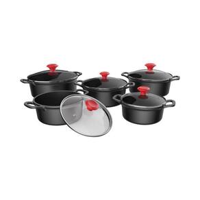 1 Caçarola - Tamanho 16cm; 1 Caçarola - Tamanho 18cm; 1 Caçarola - Tamanho 20cm; 1 Caçarola - Tamanho 22cm; 1 Caçarola - Tamanho 24cm; 1 Tampa de Vidro - Tamanho 16cm; 1 Tampa de Vidro - Tamanho 18cm; 1 Tampa de Vidro - Tamanho 20cm; 1 Tampa de Vidro - Tamanho 22cm; 1 Tampa de Vidro - Tamanho 24cm; 1 Manual.