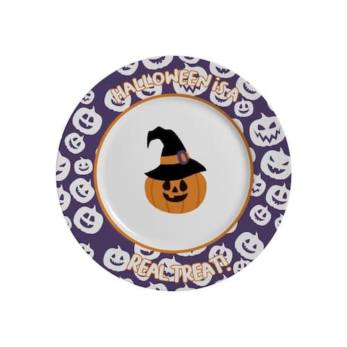 Os pratos de sobremesa Trick Or Treat Halloween têm 21 cm de diâmetro, o tamanho perfeito para servir suas deliciosas sobremesas. São feitos de cerâmica feldspática branca de alta resistência, com processo de decoração digital sobre a base branca. Além disso, eles são não refratários e não liberam substâncias tóxicas.