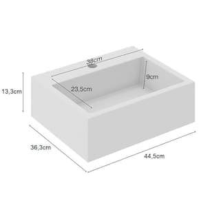 01 Cuba de sobrepor em mármore sintético na cor branco, com furações de 35mm para colocação de ralo e torneira (acessório hidráulicos não acompanham o produto).