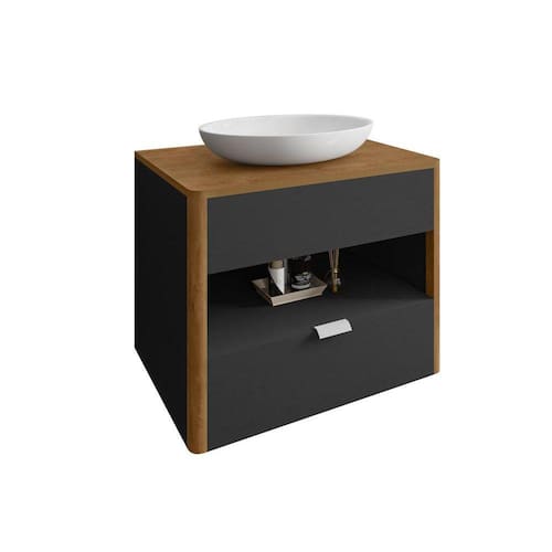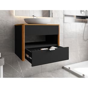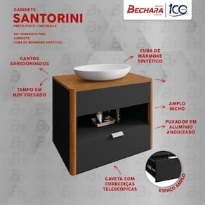 Conj Banheiro Gabinete Santorini Preto Fosco Naturalle 2076122 Bechara