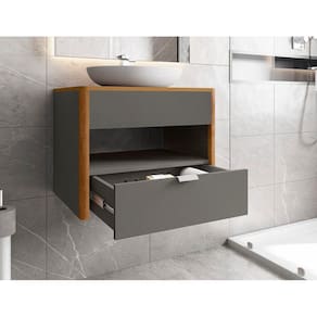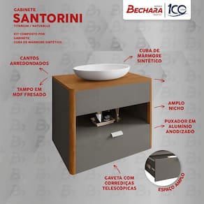 O Conjunto Para Banheiro Santorini é ideal para sua casa! Com design inovador possui seus cantos em molduras com design curvo. Ele é composto por cuba de mármore sintético no formal oval. Gabinete com amplo nicho e gaveta com puxador em alumínio anodizado e corrediças telescópicas proporcionando a abertura completa da gaveta bem como um deslizar mais suave.