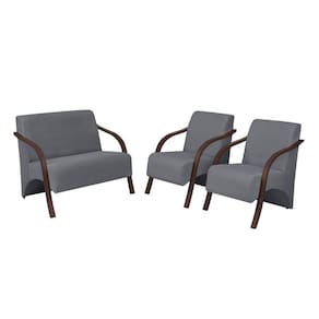 Conj Braço Madeira 1 Namoradeira 2 Poltronas Grafite