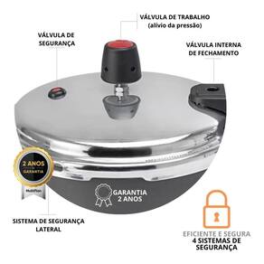 Conj de Panela 4,5l + Utensílio Nylon- Multiflon Conjunto de Panela 4,5l + Utensílio Nylon - Multiflon Acompanha Utensilios Nylon. DESCRIÇÃO: Comparada a panelas comuns, a Panela Quartzo pode reduzir o tempo de cozimento pela metade, o que representa grande economia de tempo e energia para você. As panelas Multiflon foram desenvolvidas para agilizar o preparo de alimentos que requerem um maior tempo de cozimento. Além de oferecer praticidade para o usuário, este tipo de produto deve oferecer também segurança. Para garantir isso, a Multiflon somente coloca no mercado produtos que atendem a todas as normas em vigor e que foram devidamente certificados pelo INMETRO. MEDIDAS: -capacidade: 4,5L; -diâmetro: 20cm; -altura: 23,2cm; -altura Bojo: 15cm; -comprimento até o cabo: 40,20cm. TECNOLOGIA: -resultado de anos de pesquisa e experimentações, a tecnologia Quartzo inova pela extrema resistência e durabilidade. -isso significa que o revestimento apresenta alta espessura, garantindo extra resistência à abrasão e alta performance antiaderente. -O revestimento Quartzo é altamente antiaderente e livre de PFOA. CARACTERÍSTICAS: -fogão a gás, elétrico e vitrocerâmico; -antiaderente Multiflon Quartzo; -cabo em baquelite resistente a altas temperaturas; -tampa em Alumínio Polido; -válvula de Travamento Automático,Válvula de Trabalho e Válvula de Segurança; -sistema Lateral de Segurança; -atóxico; -pode ir ao Lava Louças; -alúminio de alta qualidade; -pode ir ao refrigerador; -PFOA Free. CUIDADOS: -lavar com esponja macia e detergente neutro; -não pode ser no Microondas. Marca: Não Informado