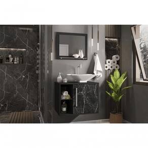 Kit composto por: Gabinete Lavatório em Mármore Sintético Espelheira