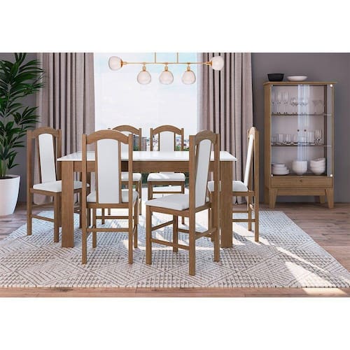 Conjunto Mesa Fixa com Cristaleira e 06 Cadeira 500, CJE11500, Mov. Canção.