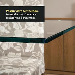 A mesa possui base em pedestal com tom amadeirado clássico. O tampo em MDP possui o topo em pintura branca e conta com um vidro sobreposto super moderno, que deixa seu ambiente mais clean. Além disso, é e fácil de instalar.