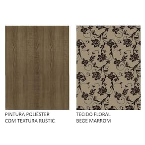 As cadeiras são fabricadas com estrutura em MDF/MDP e o encosto possui pintura Crema. O assento é estofado e revestido com tecido Bege Marrom.