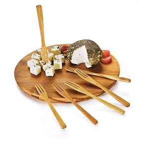 Conjunto para petiscos em Bambu. Acompanha tábua e seis garfinhos para queijo. Tábua confeccionada com tripla camada invertida, para dar maior durabilidade e não deformar com o passar do tempo. Dimensões da tábua: 21,3x1,2cm Imagens Ilustrativas PD-15783 Produtos confeccionados em Bambu: Utilizamos o Bambu, por ser uma matéria prima ecológica, autossustentável e com alta resistência. Além de versátil, o Bambu é 30% mais leve que as madeiras de lei. Sua utilização não agride o meio ambiente, pois, quando ceifado rebrota em pouco tempo.