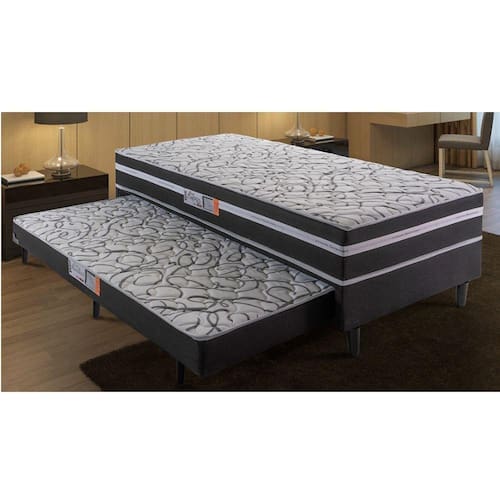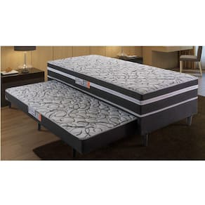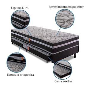 Conjugado ortopedico Aspen da Hellen, e o conjunto ideal para quem precisa de um colchao extra. Sua estrutura ortopedica garante ao produto um nivel de conforto extra firme com colchao conjugado e cama auxiliar em espuma D-28 certificada pelo INMETRO. Sua estrutura e feita em 100 eucalipto com tampo em compensado de 4 mm, o revestimento em poliester garante a beleza do movel. Conjugado Box Hellen Aspen, o produto perfeito para quem busca conforto e praticidade na hora de dormir, e uma otima opcao para quartos de solteiro e ate mesmo de hospedes.