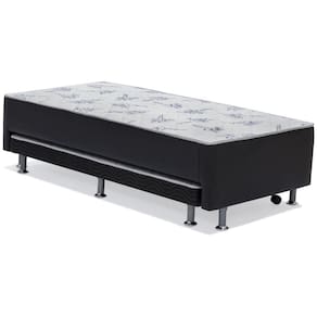 Conjugado Cama Napa Nero Vazado possui um Colchão acoplado a a Cama, além de uma cama extra para acomodadar suas visitas que pode ser guardada dentro do Box quando não está sendo utilizada. É composto 100% com madeira de reflorestamento, preocupação da Ortobom com o meio ambiente. Seu revestimento é em Napa Preto. A Cama acompanha jogo de pés em PVC. Combinação perfeita de Modernidade e Praticidade em um só produto.