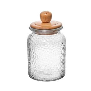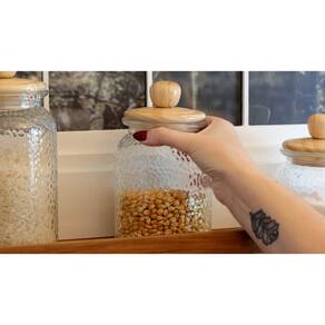 Conjunto 02 Potes de Vidro Martelado com Tampa Hermética de Bambu 1L Wolff