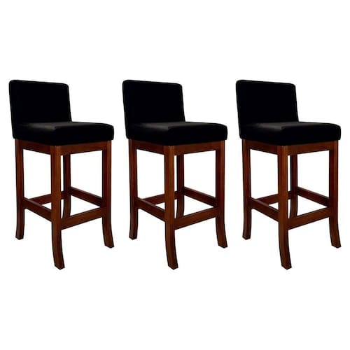 Conjunto 03 Banquetas Alta em Madeira Maciça Nápoles Pinhão - Preto