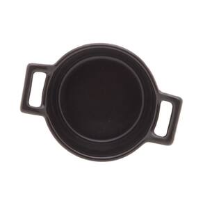 Conjunto 03 Petisqueiras Redondas de Porcelana Preta com Bandeja de Bambu Wolff