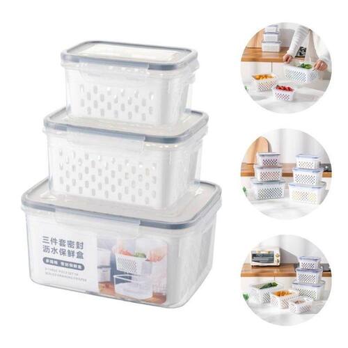 Conjunto 03 Potes Herméticos Empilhável Com Cesto Interno Conjunto 03 Potes Herméticos Empilhável Com Cesto Interno ===================================== Cada pote acompanha um cesto interno removível, que facilita a drenagem de líquidos e a separação de alimentos, sendo especialmente útil para frutas, legumes lavados ou itens que precisam de ventilação. Produzidos em plástico transparente resistente, os potes permitem fácil visualização do conteúdo, além de possuírem tampa com vedação hermética, que protege os alimentos contra umidade, odores e contaminações. Versáteis e duráveis, os potes são ideais para uso doméstico ou , atendendo diferentes necessidades de armazenamento com eficiência e estilo. ===================================== Contém: 03 Potes Especificações: - Material: Plástico e Silicone - Medida Pote 01: 22cm x 16,5cm x 10,5cm / 3,3 Litros - Medida Pote 02: 18cm x 13,5cm x 09cm / 1,75 Litros - Medida Pote 03: 15cm x 10cm x 07cm / 850ml - Livre de BPA - Hermético - Empilhável: Sim - Cesto Interno Removível - Tampa com Travas nas Laterais - Cor da vedação de silicone enviada de forma aleatória ===================================== Devido à diferença entre monitores e iluminação diferentes, pode haver variação na tonalidade apresentada no anúncio. Medidas muito aproximadas.