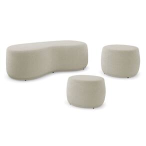 Conjunto 03 Puffs Decorativos Living Aisha Orgânico Bouclê Bege - Abmaza