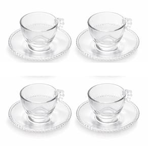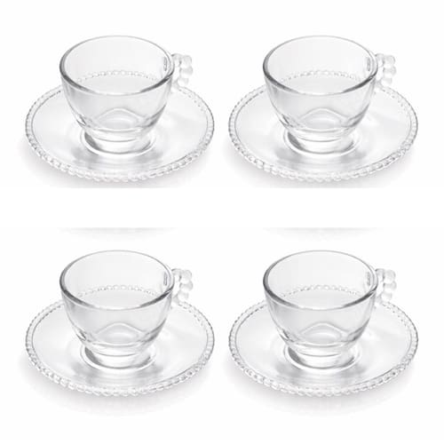 O Conjunto com 4 Xícaras de Café com Pires Pearl Wolff é a escolha perfeita para quem aprecia sofisticação nos detalhes. Produzidas em cristal, as peças apresentam acabamento delicado que remete ao efeito de pequenas pérolas, trazendo charme e requinte à composição. Com capacidade de 80ml, são ideais para servir café espresso com estilo, tornando o momento ainda mais especial. Um conjunto elegante para compor mesas clássicas ou contemporâneas com muito bom gosto.
