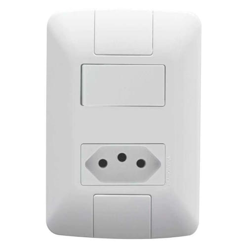 Conjunto 1 Interruptor + 1 Tomada 20a Aria Branca Tramontina Conjunto 1 Interruptor + 1 Tomada 20a - Aria Branca- Tramontina Utilize o Conjunto 4x2 com 1 Interruptor Simples 6 A 250 V e 1 Tomada 2P+T 20 A 250 V Tramontina Aria Branco e tenha um item completo para ligar equipamentos elétricos e eletrônicos e ainda acender as luzes do ambiente. Produzido em termoplástico com acabamento brilho na cor branca, ele possui sistema modular com o suporte incorporado e furo oblongo que facilita a fixação e a regulagem da placa à parede, deixando-a reta; além disso, sua instalação não fica aparente, o que deixa seu cômodo ainda mais bonito. Um item ideal para sua casa, que acompanha suporte e parafusos para a instalação!