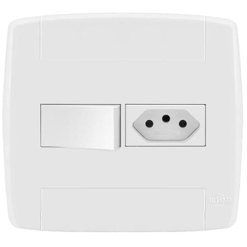 Interruptores e Tomadas - Linha Modular: Ilumi Lev Conjunto 4X4 Completo e Desmontado com: 1 Módulo de Tomada 10A 1 Módulo de Interruptor Simples 1 Placa 4X4 com suporte para 2 Módulos 4 Parafusos Para montar é fácil, apenas um click. só encaixar