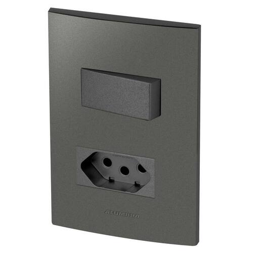 Alumbra Inova Pro Class - Placas Grafite / Módulos Grafite Linha Modular de Interruptores e Tomadas Conjunto Completo Desmontado: 1 Módulo de Simples 1 Módulo de Tomada 20A 1 Placa 4X2 para 2 Módulos 1 Suporte 4X2 2 Parafusos Cor: Grafite Para montar é apenas um click, só encaixar Marca de conformidade de produtos certificados. Marca: Não Informado