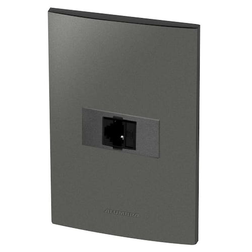 Alumbra Inova Pro Class - Placas Grafite / Módulos Grafite Linha Modular de Interruptores e Tomadas Conjunto Completo Desmontado: 1 Módulo de Tomada para Telefone RJ11 - 4 Fios 1 Placa 4X2 para 1 Módulo 1 Suporte 4X2 2 Parafusos Cor: Grafite Para montar é apenas um click, só encaixar Marca: Não Informado