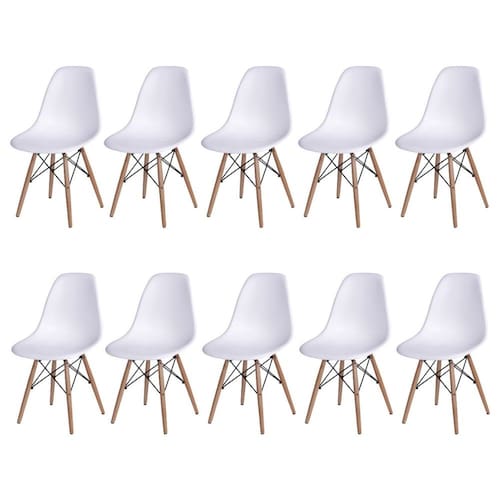 Conjunto 10 Cadeiras Base Madeira Dkr - caixa com 10 Unidade - Branco.