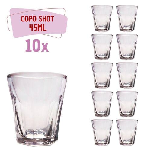 Conjunto 10 Copos Shot Vidro Tequila Cachaça Dose 45ml Bar