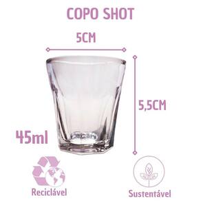 Um copo shot transparente de 45mL é um pequeno recipiente utilizado para servir bebidas em quantidades controladas. Com um design simples e elegante, o copo é feito de vidro transparente e possui capacidade para uma dose única de bebida destilada ou licor. Ideal para quem gosta de desfrutar de uma bebida forte em pequenas doses, o copo shot é perfeito para ocasiões sociais ou para momentos de relaxamento solitário.