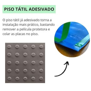 As placas de piso tátil são fabricadas em PVC, um material plástico durável e resistente ao desgaste. Cada placa segue as normas técnicas da ABNT NBR 9050 para acessibilidade em edificações e espaços públicos.
