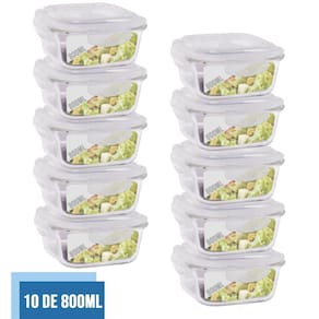 Conjunto 10 Pote Vidro 800ml Hermético Marmita Tampa 4 Trava Conjunto com 10 Potes de Vidro com Tampa Hermética 800ml Os potes com tampas herméticas Click Glass são perfeitos para o dia a dia, garantem o melhor sabor, não fica com cheiro indesejado e você pode esquentar no Microondas ou Forno Tire a tampa nesses casos , ideal para quem trabalha e leva o alimento de casa, ou para guardar diversos alimentos na geladeira/freezer. Além do mais, é fácil de lavar e super resistente. Praticidade com qualidade, veja os diferenciais: · Vidro Borosilicato; · Vai ao forno sem tampa , micro-ondas sem tampa e freezer; · Anel de silicone removível; · Mantém os alimentos frescos por mais tempo; · Evita que o cheiro se espalhe; · Sem risco de vazamento; · Possui 4 travas; · Fácil de limpar e higienizar; · Super Resistente. Postamos com agilidade Informações complementares: Modelo: Pote de Vidro com Tampa Hermética Quadrado Cor: Vidro Translucido Marca: Quality House / Univendas Material: Vidro Capacidade: 800 ml Altura: 7,8 cm Largura: 15,0 cm Peso: 575g Itens inclusos: 10 Unidades do Item descrito acima