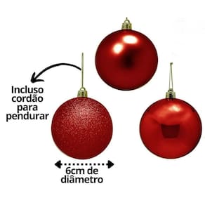 Cada bola possui acabamento prime de alta qualidade, garantindo brilho intenso, cores vivas e resistência para ser usada por muitos Natais.