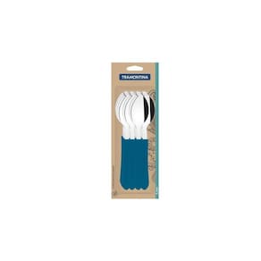 Conjunto 12 Colheres Leme Azul Tramontina Aço Inox Deixe suas refeições ainda mais especiais e coloridas com o Conjunto de Colheres de Mesa Tramontina Leme com Lâminas em Aço Inox e Cabos de Polipropileno Azul 12 peças. Produzidas com lâminas em aço inox com alta resistência e durabilidade e cabos em polipropileno na cor Azul, as peças proporcionam um manuseio confortável e ainda garantem uma refeição cheia de estilo. Elas são muito fáceis de limpar e podem ser levadas à máquina de lavar louças, otimizando seu dia a dia na cozinha.
