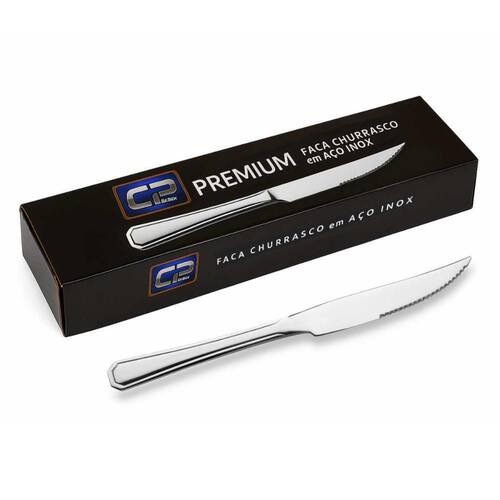 A faca de churrasco Premium GP Inox é moderna e ideal para compor sua mesa, é resistente a impactos e durável, seu design é versátil e vai facilmente combinar com os demais utensílios. - Cabo e lâmina em aço inoxidável; - Conteúdo da embalagem: 12 unidades Faca Churrasco Premium.