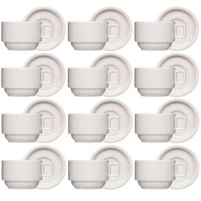 Conjunto 12 Xícaras Café Chá com Pires 210ml Bar Hotel Porcelana Branca Germer.
