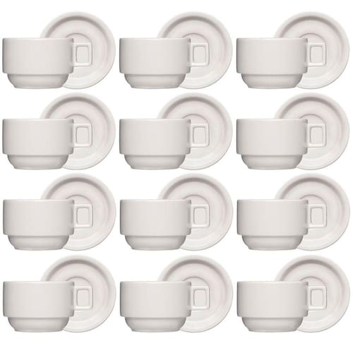 A linha Bar Hotel da Germer foi pensada especialmente para estabelecimentos que buscam uma boa dose de funcionalidade, combinada a uma bela pitada de estilo. Qualidade e praticidade servidas de bandeja para quem quer oferecer o melhor a seus clientes com este conjunto de 12 xícaras de café com pires 210ml em porcelana branca. Perfeito para serviços de café da manhã, room service e cafeterias. Com design atemporal, as louças para café da manhã da linha Bar Hotel podem ser facilmente combinados com outras porcelanas, ou completadas por outras peças da linha, para formar uma mesa magnífica! Xícaras e Píres 100% de porcelana, com elevado nível de resistência mecânica, baixa porosidade e alta densidade, que, no dia-a-dia, lhe conferem durabilidade, inocuidade, toque suave e beleza.