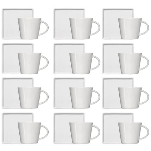 Conjunto 12 Xícaras Café Chá Porcelana Branca 185ml Píres Quadrado Americana Germer.Garantia: 90 dias / Peso: 5,3kg / Cor predominante: branco / Referência: 7798137692412;Dimensões de cada xícara: 10,5m (C) x 8cm (D) x 6,5cm (A);Capacidade de cada xícara: 185ml;Diâmetro de cada pires: 12cm;Conteúdo: 12 xícaras e 12 pires;Material: porcelana.Cuidados e limpeza:- Ao usar o produto pela primeira vez, lavar bem a peça com esponja macia e sabão neutro;- Higienizar sempre com esponja macia e sabão neutro;- Compatível com microondas e a lava-louças.Este conjunto de 12 xícaras com pires é ideal para quem gosta de sofisticação e beleza ao servir o chá ou café. O jogo conta com 12 xícaras de porcelana e 12 pires com formato quadrado, dando um toque ainda mais especial a sua composição de mesa posta. Surpreenda seus convidados ao servir com esse conjunto xícara de chá. Peças produzidas em porcelana de excelente qualidade, podendo ser levada ao microondas ou lava-louças. Perfeito para serviços de café da manhã, room service e cafeterias, bem como restaurantes e hotéis.