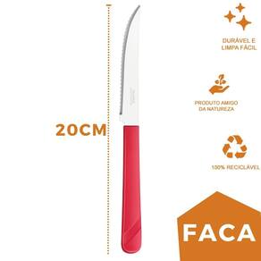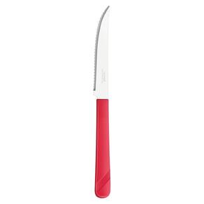 Conjunto de Facas As facas de mesa da linha Luna são um conjunto elegante e funcional para qualquer mesa de jantar. Com um cabo vermelho vibrante feito de plástico de alta qualidade, estas facas são confortáveis de segurar e fáceis de identificar em meio a outros utensílios de mesa. O aço inox de alta qualidade das lâminas garante que elas permaneçam afiadas por um longo tempo, enquanto o design elegante torna as facas uma adição atraente à sua coleção de utensílios de cozinha.