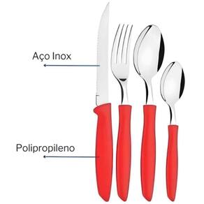 Contém: 01 Conjunto 17 Peças Faqueiro com Porta Talher Vermelha