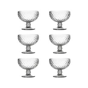 Conjunto 18 Unidades Taça de Vidro Sobremesa Bico de Abacaxi Conjunto de Taça de Vidro Sobremesa Bico de Abacaxi ===================================== Com um design clássico de origem portuguesa do século XX, reconhecido mundialmente pela sua lapidação em relevo que lembra a textura da fruta abacaxi, criando um efeito visual encantador que reflete a luz e adiciona requinte à apresentação dos alimentos.