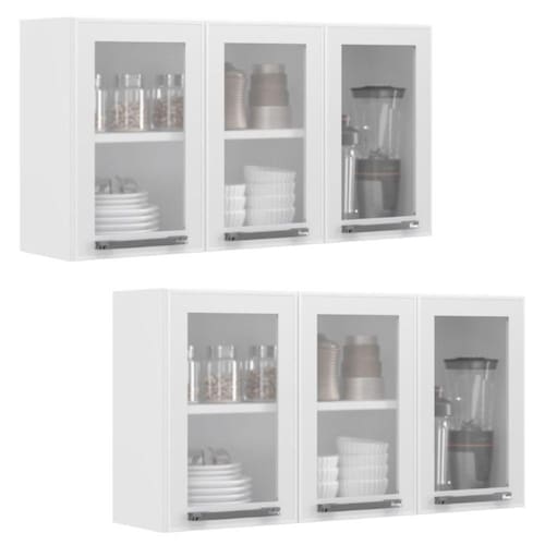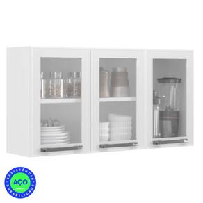 Conjunto 2 Armários de Cozinha Aéreos Itatiaia Aço 3 Portas Com Vidro Florença Branco Neve