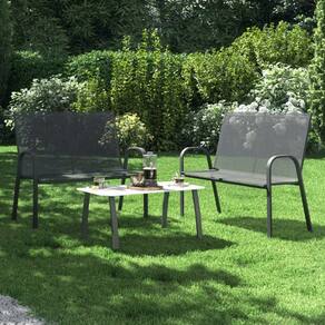 Produto: Conjunto para Jardim Tipo de Conjunto: Mesa com Bancos Coleção: Jardim Alma Marca: Naterial Material: Aço Cor: Cinza Tonalidade: Cinza Quantidade de Lugares: 4 lugares Uso Indicado: Para Relaxar Áreas Indicadas: Externas com Cobertura Tipo de Áreas Indicadas: Secas Estilo: Essential Modelo: Alma Quantidade de Peças: 3 peças (1 mesa e 2 bancos) Mesa: Material do Tampo: Vidro Estrutura: Metal (Aço) Dimensões: 35x45x85 cm (AxLxC) Mesa Dobrável: Não Furo para Ombrelone: Não Banco: Material do Assento e Encosto: Tecido Estrutura: Metal Quantidade de Lugares por Banco: 2 lugares Dimensões: 91x69x70 cm (AxLxP) Este conjunto essencial combina a robustez do aço com a delicadeza do vidro, trazendo um toque moderno e sofisticado para o seu jardim. Aproveite a durabilidade e o design contemporâneo da linha Alma da Naterial, especialmente desenvolvida para proporcionar momentos de lazer em ambientes externos protegidos.
