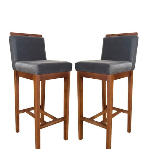 Conjunto 2 Banquetas Alta em Madeira Maciça Libéria CCS Interiores Pinhao/Cinza