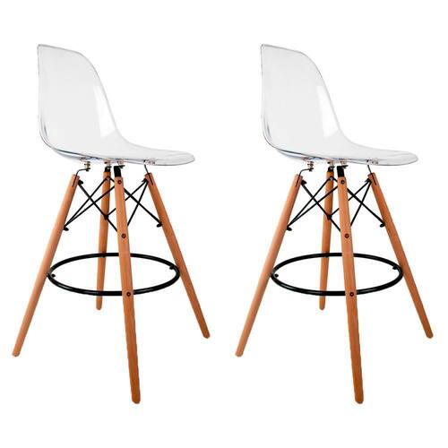 Fabricante: Seat & Co Cor: Transparente Marca: Seat & Co Altura/cm: 106 Modelo: Charles Eames Peso/kg: 5.6 Quantidade: 2 Design: Eames Gênero: Unisex Materiais da estrutura: Policarbonato Encosto: Policarbonato Assento: Policarbonato Base: Madeira e Aço Largura/cm: 53 Profundidade/cm: 56 Marca: Seat&co Ean: 7908355003062