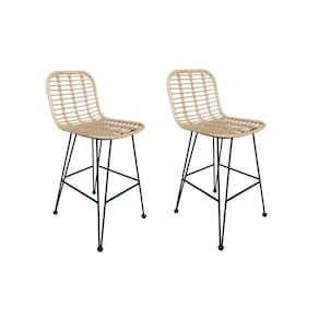 Conjunto 2 Banquetas Nassau em Aço e Fibra Sintética Marroml/Preto - Bege