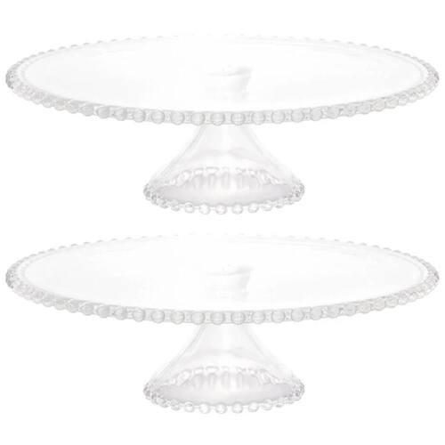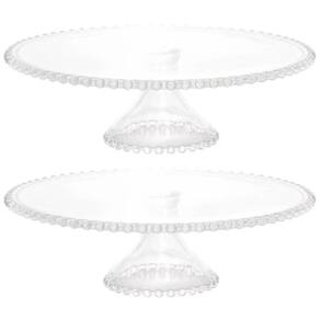 Conjunto 2 Boleiras de Cristal com Pedestal 31x11cm Pearl Wolff Porta Bolo Pudim Doces.