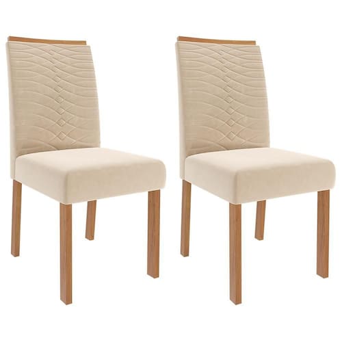 Conjunto 2 Cadeiras Clarice Wood - Cimol Móveis O Conjunto de Cadeiras Clarice Wood combina sofisticação e resistência, com estrutura e pés em Madeira Tauari e acabamento em verniz. O assento revestido em tecido e espuma de alta densidade proporciona conforto, enquanto o encosto com detalhe bordado adiciona um toque de elegância. Com design clássico e acabamento refinado, cada cadeira suporta até 100kg, tornando-se a escolha perfeita para compor ambientes acolhedores e sofisticados.