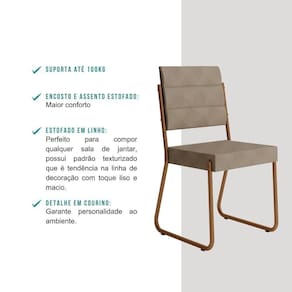 O Conjunto de Cadeiras Carraro harmoniza facilmente com diferentes decorações e consegue combinar com diversos estilos. É composta por peças de design marcante, com tubos fortes e resistentes. Além de ser o toque especial que falta para o seu ambiente, o encosto e assento estofados proporcionam uma experiência muito confortável ao usuário.
